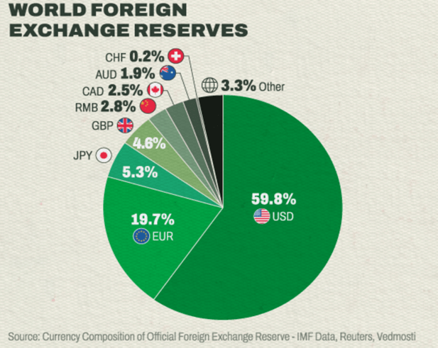 Yukarındaki grafiğe bakan herkes dünya ticaretinin dolar ve euro üzerinden yürüdüğünü, sınırsızca basılan bu paralar ile para ile satılan her şeyin kolayca alınabildiğini görür. Böyle rezerv paranız var ise ekonominin kaidelerine uymak zorunda değilsiniz, ülkenizde ağaç ve pamuk bitmediği sürece para basar, gidip şirket, şehir, bölge, hatta ülke bile satın alabilirsiniz. Sizi bu güçten kimse mahrum edemez. Peki paranız rezerv para olmaktan çıkarsa ne olur? Dağılırsınız. Tarihteki küçük devletlere oranla büyük devletlerin daha çok yıkıldığını görürsünüz.